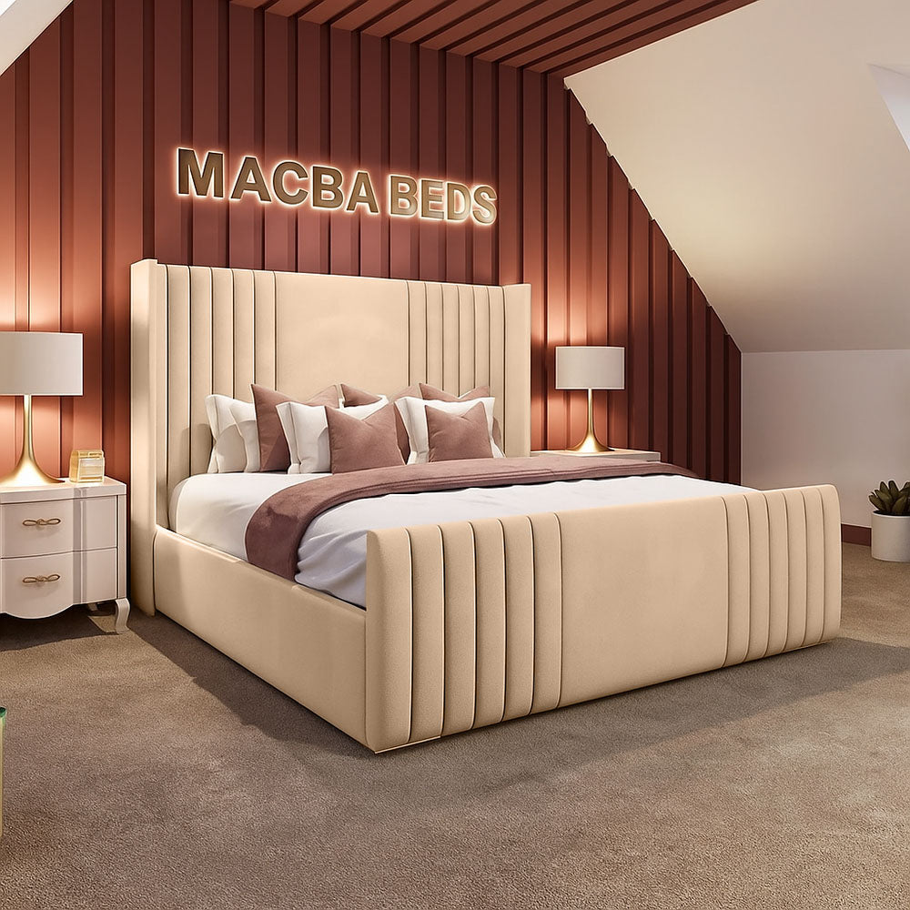 Bring elegance and practicality together with the Nevada Wingback Bed Frame by Macba Beds — a true blend of craftsmanship, comfort, and contemporary design. Handcrafted in the UK, this bed is built to impress with its bold silhouette, refined details, and superior durability, making it a standout feature in any bedroom.