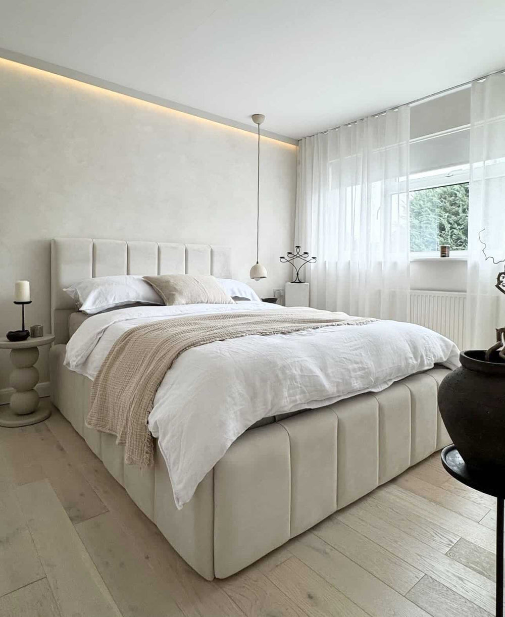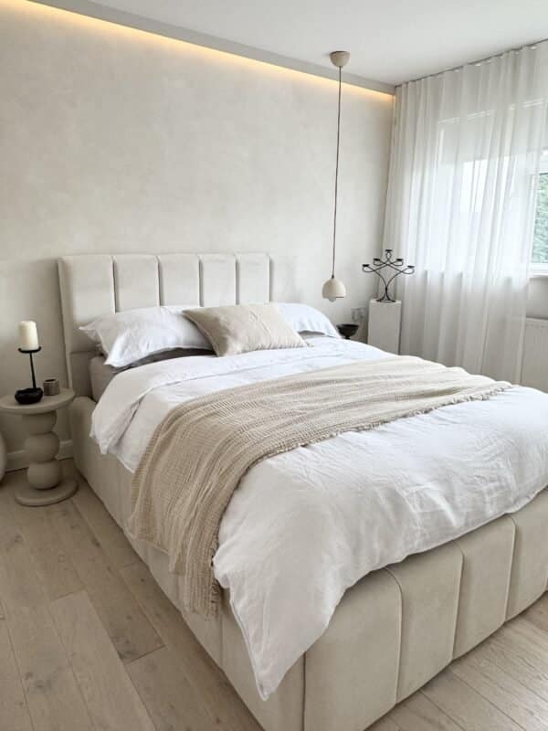 Crafted with smooth curves and a plush textured finish, this bed exudes understated luxury and timeless appeal, seamlessly blending into both minimalist and classic interiors.